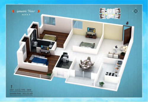 Modular electrical switches. TV and Telephone points in bedrooms & living room. Provision for A/C point in all rooms.